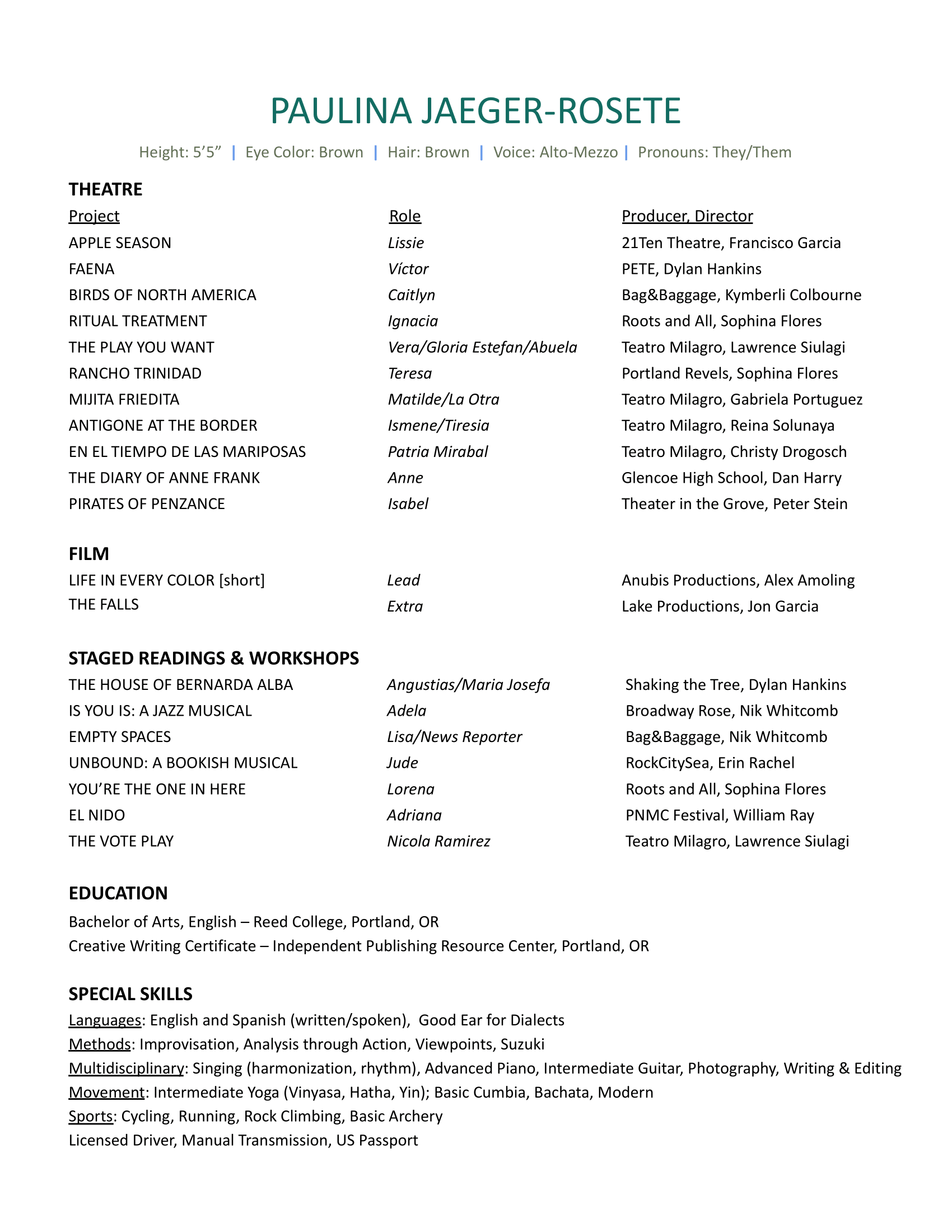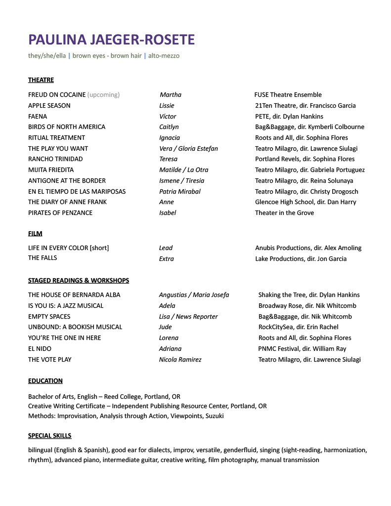 PHOTOS FROM RECENT PRODUCTIONS (2023 - 2025)